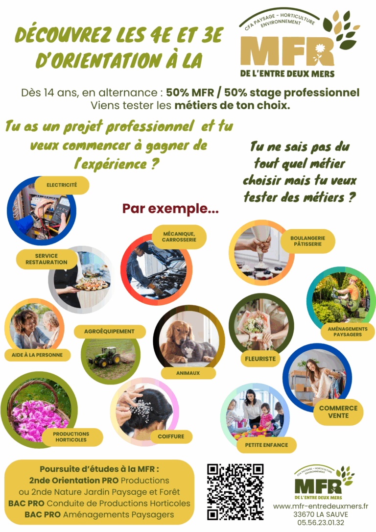 - Être motivé(e) par la découverte des domaines professionnels en lien avec la nature, les services et l’accueil